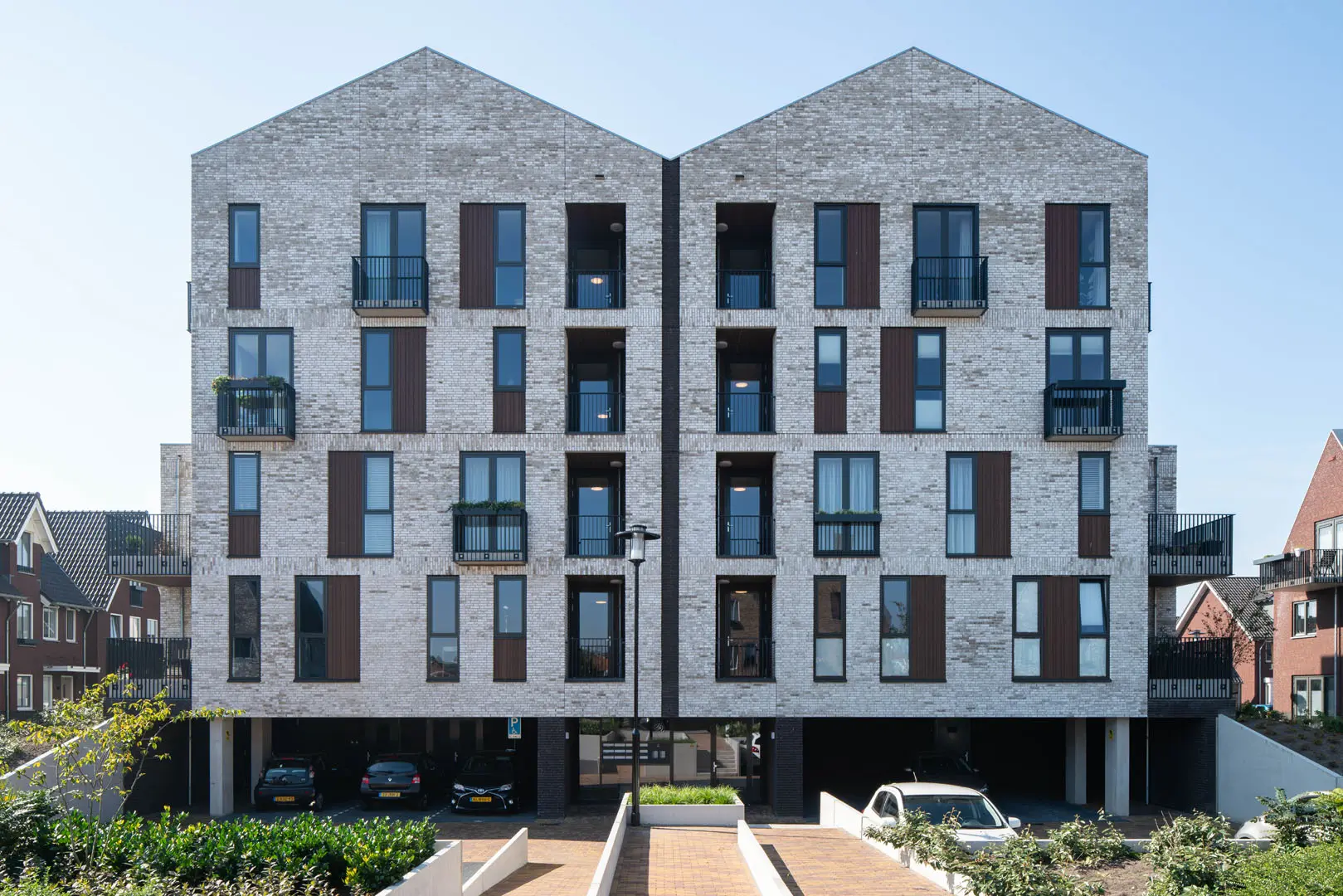 Havenzicht, het markante appartementengebouw met 10 ruime appartementen, staat op de kop van de Loshaven. Ook dit deel is groen en waterrijk. Carlo verteld: “vanaf de toren kijk je heel mooi over de voormalige haven, waar bootjes liggen en in de zomer kinderen zwemmen. We hebben ook nagedacht over zo min mogelijk auto’s in het straatbeeld. Dat lukte door bijvoorbeeld de bewoners van Havenzicht hun auto’s op een half verdiept parkeerterrein te laten parkeren, waarbij het terrein door groene taluds wordt omsloten. Zo ervaar je ook hier veel groen en ruimte om je heen.” Bijkomend extraatje: doordat het gebouw iets verhoogt ligt hebben ook de appartementen op de begane grond vrij uitzicht, wat het woongenot ten goede komt.